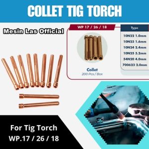 - Pemilihan Ukuran : Tersedia dalam berbagai ukuran, collet harus dipilih sesuai dengan diameter elektroda tungsten yang digunakan untuk memastikan penjepitan yang optimal dan mencegah elektroda terlepas atau terlalu longgar.