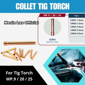 - Menjepit Elektroda : Collet memegang elektroda tungsten dengan erat di dalam obor TIG, memastikan stabilitas dan konsistensi posisi elektroda saat menyentuh benda kerja.