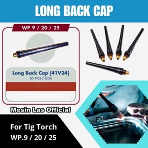 Long back cap argon WP9 adalah penutup belakang (back cap) yang panjang untuk obor las TIG (Tungsten Inert Gas) tipe WP9 yang menggunakan gas argon sebagai gas pelindung, berfungsi untuk penjepit elektroda tungsten yang stabil, melindungi dari kebocoran gas, dan mendukung pendinginan elektroda yang terkikis selama pengelasan.