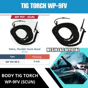 TIG Torch WP-9 adalah sebuah obor las TIG (Tungsten Inert Gas) berpendingin udara yang populer dan banyak digunakan, berfungsi untuk mengarahkan elektroda tungsten dan gas pelindung seperti Argon ke area pengelasan, serta mampu digunakan untuk berbagai jenis mesin las TIG. Model ini dikenal karena desainnya yang praktis, ergonomis, dan seringkali dilengkapi leher fleksibel untuk kontrol yang lebih baik di area yang sulit dijangkau.