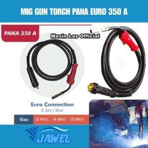 Sebuah mig gun Pana 350A euro connection adalah jenis obor las yang digunakan untuk pengelasan MIG (Gas Inert Logam) dengan karakteristik berikut: