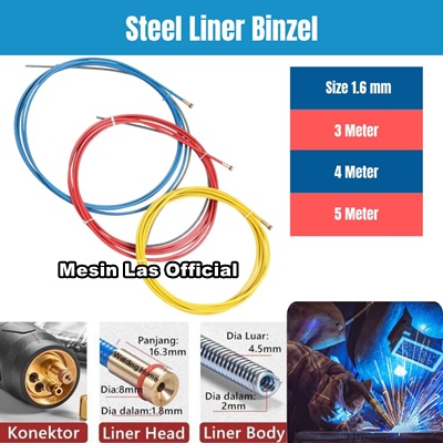 - Steel Liner Binzel type diameter 1,2-1,6mm panjang 4 meter: Salah satu varian yang umum digunakan, cocok untuk berbagai jenis torch Binzel.