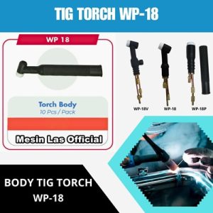 - WP18: Menunjukkan model atau jenis obor TIG yang dirancang khusus untuk sistem pendingin air atau “water-cooled”, yang sangat penting untuk mesin las argon dengan daya tinggi dan digunakan dalam waktu lama.