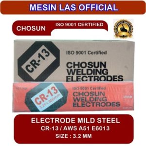 Kawat las Chosun CR-13 adalah elektroda jenis titania tinggi (high titania) yang dirancang untuk pengelasan baja struktural ringan dan baja karbon rendah (Chosun Welding). Kawat las ini memiliki klasifikasi AWS A5.1 E6013, yang berarti memiliki kekuatan tarik minimal 60.000 psi dan dapat digunakan di semua posisi pengelasan.