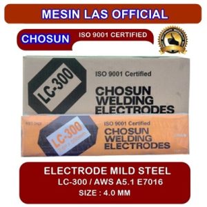 Chosun LC-300 adalah elektroda las (kawat las) tipe hidrogen rendah (low hydrogen) yang dirancang khusus untuk pengelasan baja berkekuatan tarik tinggi kelas 50kgf/mm².