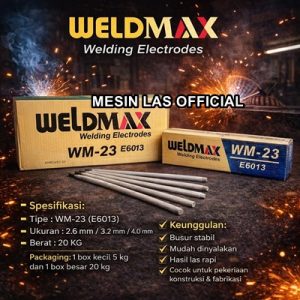 Weldmax WM-23 (sering disetarakan dengan AWS E6013) adalah kawat las tipe rutil/titania yang dirancang untuk pengelasan baja ringan dan paduan rendah. Kawat las ini serbaguna (AC/DC), menghasilkan busur stabil, terak mudah lepas, serta hasil lasan halus dan menembus dalam.