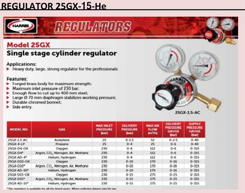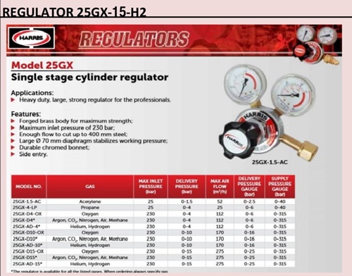 Jual Regulator Harris Model 25GX-15 Single Stage Harga Murah. Jika Anda Berminat Silahkan Hubungi Mesin Las Official Tlp.021-2268.3317 / Hp. 0812.5000.4223. Original Harris.