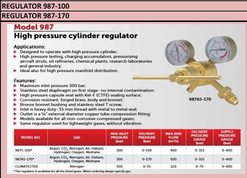 Regulator argon biasanya menunjukkan laju aliran gas dalam liter per menit atau kaki kubik per jam, sedangkan regulator oksigen menunjukkan tekanan dalam PSI dan bar. Regulator CO2 juga mungkin memiliki fitting yang berbeda untuk silinder gas.